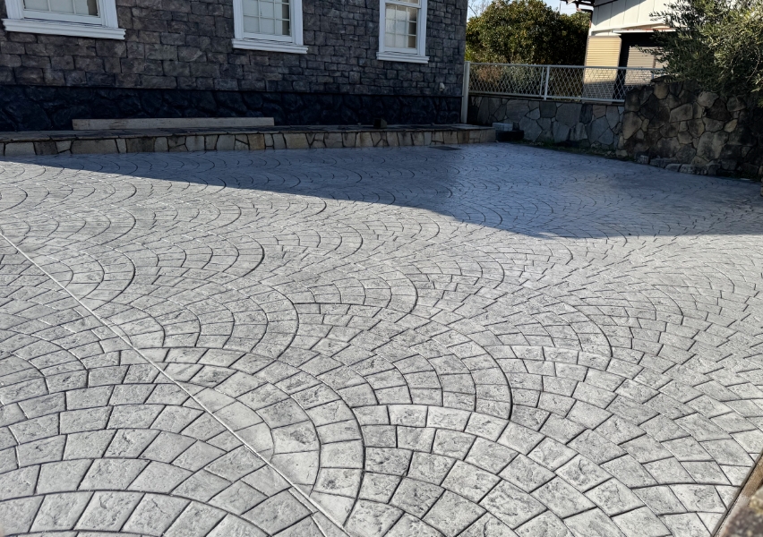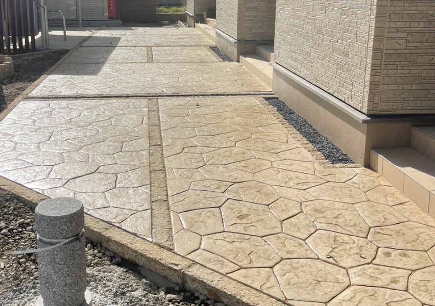 スタンプコンクリートとは、打設したコンクリートの表面に専用の型を押し当て、レンガや木目、タイル、天然石などをリアルに再現する施工方法です。型の種類やデザインを変えることで、多彩な質感や雰囲気を演出できるのが大きな魅力です。