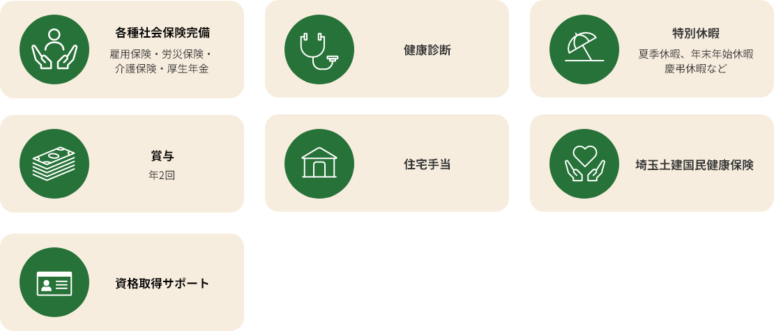 そんな当社では「努力をしたら形になる」という考えの元、身につけた技術や日々の努力をしっかりと評価し、給与にしっかり反映しています。安心して長く働ける環境を整えていますので、堅実に稼ぎたい方のご応募をお待ちしています。